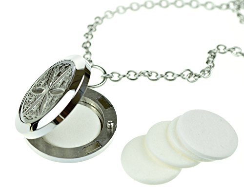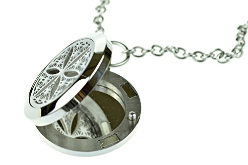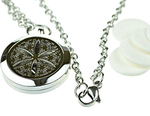 -. Feature : UNIQUE - aromatherapy Essential oils and Diffuser Necklace Gift set for you or to give as a gift. Combines beautifully crafted Diffuser necklace with one 5 ml bottles of 100% pure therapeutic grade essential oils, and 5 refill pads packaged in a finely crafted gift box. / PREMIUM MATERIAL - Locket and 24 inch chain is made from hypo-allergenic surgical grade 316L stainless steel for long life and durability. A piece of jewelry made to last a lifetime / PREMIUM ESSENTIAL OILS - Enjoy 100% Pure Therapeutic Premium Grade Inner Peace (Blend of Geranium, Clove Bud, Patchouli,Lavender, Orange). / GREAT GIFT - All in one Aromatherapy on the go to gift yourself or your love ones / LIFETIME GUARANTEED SATISFACTION - Two strong magnets closure and solid back insure you never have to worry about getting oil on your clothes Buy with confidence! Every essential oil diffuser necklace is covered by our NO Questions asked