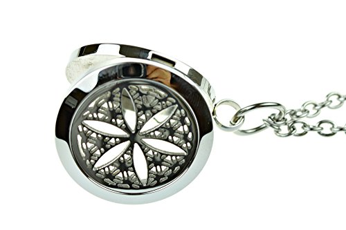 -. Title : Flower of Life Stainless Steel Aromatherapy Essential Oil Diffuser Necklace Pendant Locket Jewelry Gift Set (Inner Peace 5 Ml)