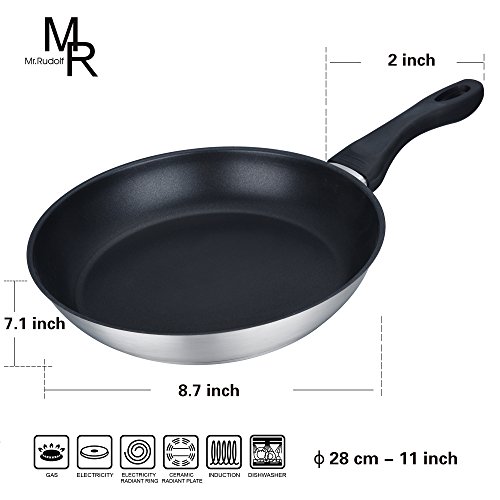 Luna Collection LN-2850 18/10 Stainless Steel 11-inch Frying Pan GREBLON Non-Stick Technology