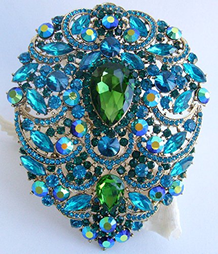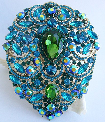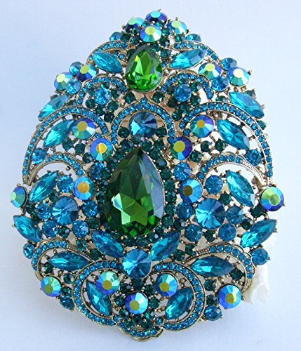 -. Feature : Material: Zinc Alloy (Vintage Gold Tone), Austrian Crystal. / Main stone color: Turquoise and Green. / The size of the brooch: 12.5cm (4.92") Height by 10.0cm (3.94") Width. / Wrapping: Come with some spare crystals, and a gift box or favor bag (depend on product size). If you need assistance please contact us. / Intended Use: Wedding/Anniversary/Mothers-day/Valentines-day/Birthday/Party/Prom/Casual Wear.