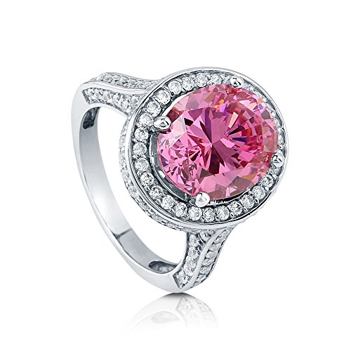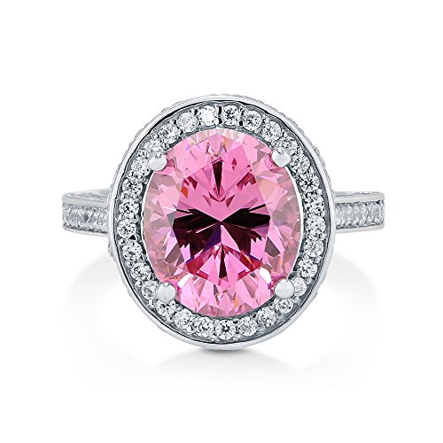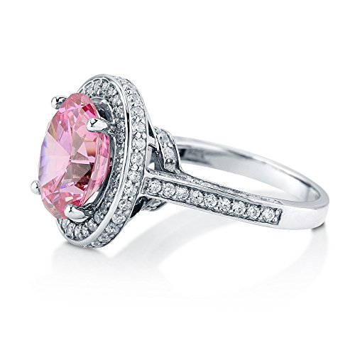 -. Title : BERRICLE Sterling Silver 6.15 ct.tw Oval Pink Cubic Zirconia CZ Halo Fashion Cocktail Ring
