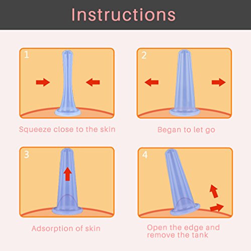 -. Feature : Being Healthy to Use: High quality durable medical grade material silicone environment protection set, healthy and safe to use, no infection and pain in treating diseases. 4 different sized facial cups as well as 2 different sized body cups so you can treat your entire body. / What the Therapy Cupping Can Do for US: It can reduce fatigue and improve your physical well-being, improve blood circulation, promote metabolism, improve immune ability. or muscle & joint pain, inflammation, arthritis, fibromyalgia, neck and shoulder tension, stress relief. Visibly firm skin, loose inches & weight, reduce cellulite, stretch marks, scars, spider veins, improve digestive function, use for post op recovery, physical therapy / How Easy to Use: It can be used not only for hospital but also more suitable for family.So you can use the cupping cups at home for preventing and treating many common conditions. It will be more comfortable and effect to use gel, oil or any other light lubricant on the area to be massaged / 4 different Size Cups : for any type of massage and body work, trigger point and: Big One: Diameter:70mm, Height: 80mm; Second : Diameter: 55mm, Third: Height: 55mm; Diameter: 37mm, 80mm;Smallest:Diameter:15mm, Height :50mm / 100% MONEY-BACK WARRANTY: Your satisfaction is our biggest concern. If you find any problem about the product, we will spare no efforts to deal with it and promise to provide 100% replacement or refund. Thank you