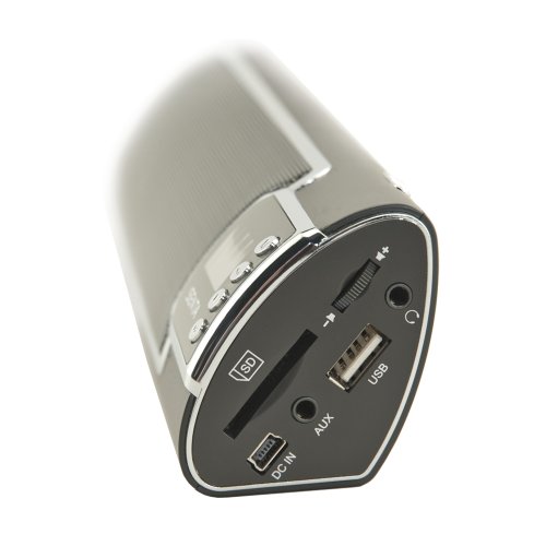 -. Feature : Audio Inputs: Bluetooth®, Aux-in, SD Card and USB Drive. Connect from virtually any device with a headphone jack or audio output. / Bluetooth® allows you to connect wirelessly. Stream and share music, movies or any audio / FM Radio, 99 FM memory presets / Streaming formats: .wav and .mp3, Supported Files: HSP, HFP, A2DP, AVRCP profiles / Portable 10 ounce speaker: 10 hour play time, 8 hour play time on Bluetooth®