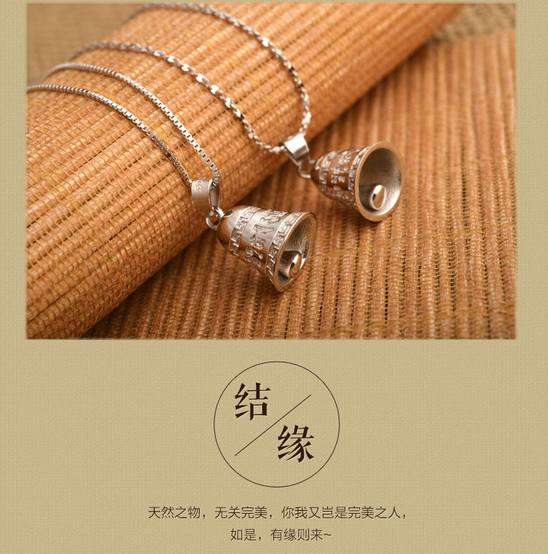开光S925纯银锁骨项链作明佛母心咒挂件女铃铛增长人缘转运吊坠