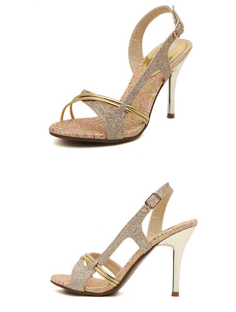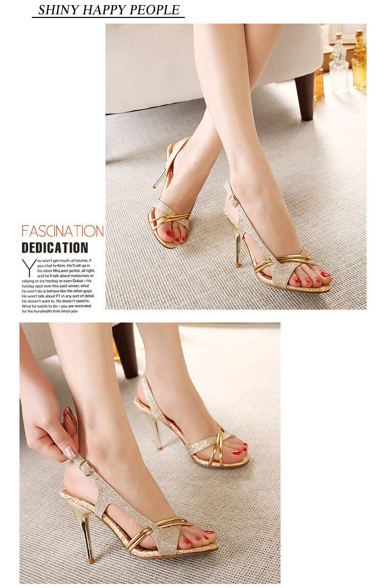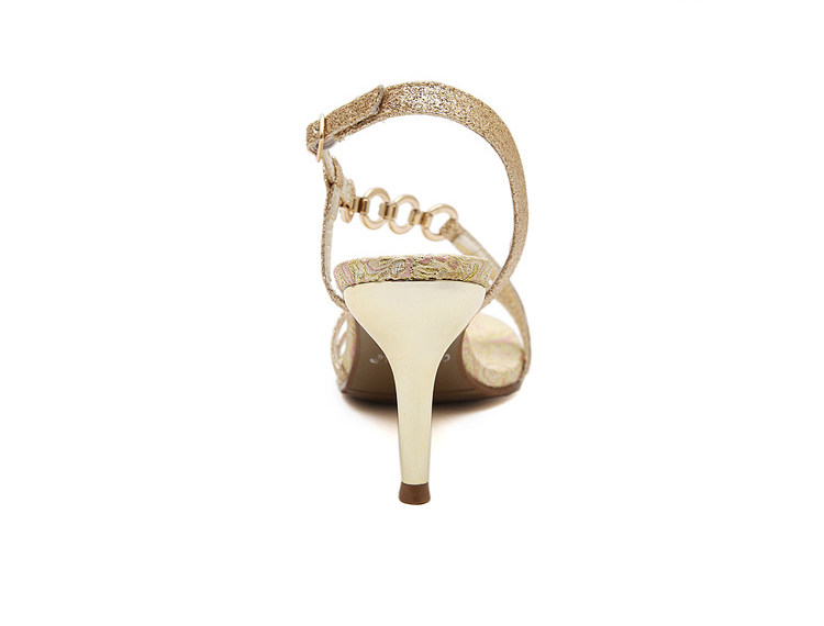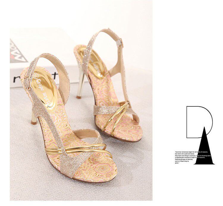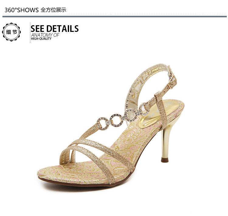 夏季新款韩版凉鞋女时尚细跟性感夜店女鞋中跟高跟露趾扣带鞋