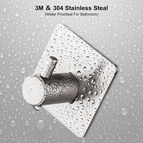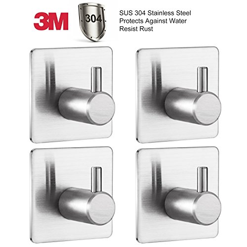 Adhesive Hooks, Heavy Duty Wall Hooks with 3M Self Adhesive SUS 304 Stainless Steel Brushed Nickel Waterproof Hooks for Bathroom and Kitchen - (4 Pack)