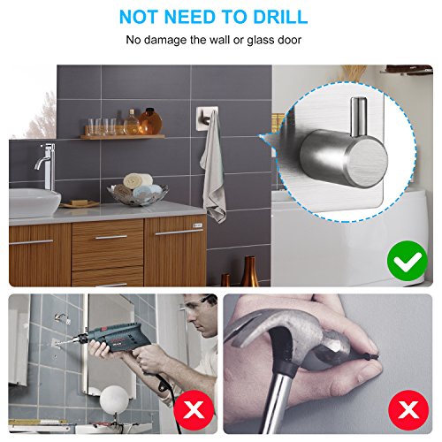 - √ No Drill and Space Saving - Wall Hooks Comes with 3M Self-Adhesive Backing, Strong Adhesiveness and Protects Against Water. Do Not Damage the Wall or Glass Door, Save Space and Keep It Clean.