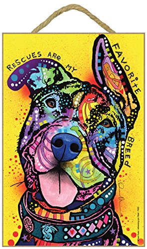 (SJT78202) Pitbull - Rescues are my favorite breed 7" x 10.5" wood plaque/sign featuring the artwork of Dean Russo
