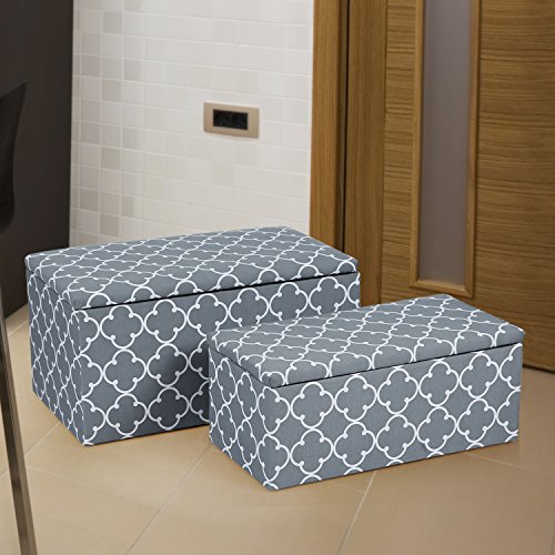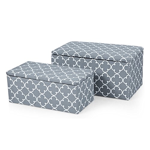 -. Title : ELEGAN Quatrefoil Pattern Storage Ottoman Benches (Set of 2)