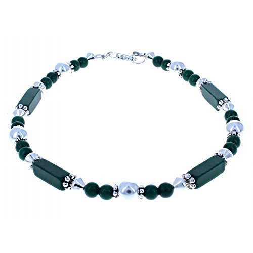 -. Title : Womens Green Quartz Agate & Sterling Silver Ladies Beaded Gemstone Anklet with Daisies