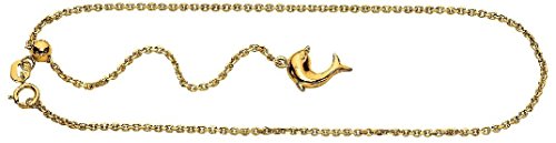 -. Title : 11" 14K Yellow Gold Cable Chain Adjustable Anklet w/ SP.R.Ing Ring Clasp & Dolphin Charm