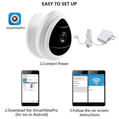 One-key WiFi (2.4Ghz only) setup in 5 minute via iPhone or Andriod smartphone using the app iSmartviewpro, stream and control from anywhere anytime on your smartphone, tablet or computer.
