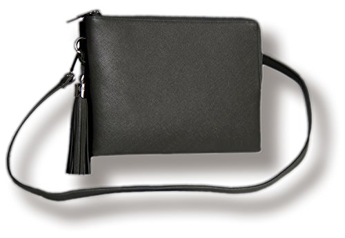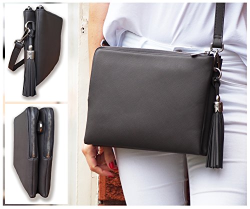 BfB Crossbody iPad Shoulder Bag & Clutch For Women - Inbuilt Wallet For Credit, Business, Id Cards, Cash, Cell Phone - PLUS 10 inch Tablet Sleeve – Handmade Luxury a Great Price - CHARCOAL GREY