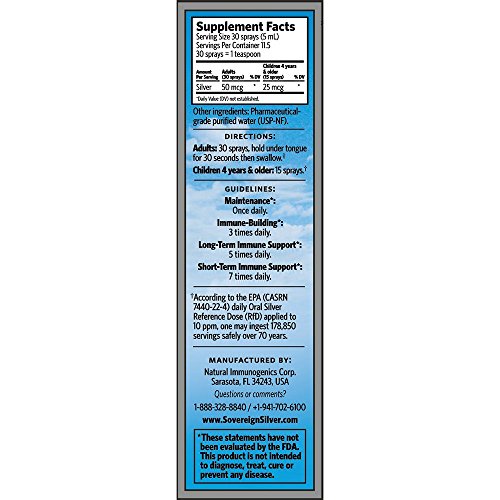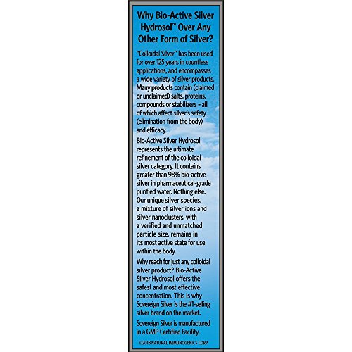 Sovereign silver bioactive silver hydrosol 10 ppm fine mist spray 2oz contains 98% positively charged silver, in pharmaceutical-grade purified water.