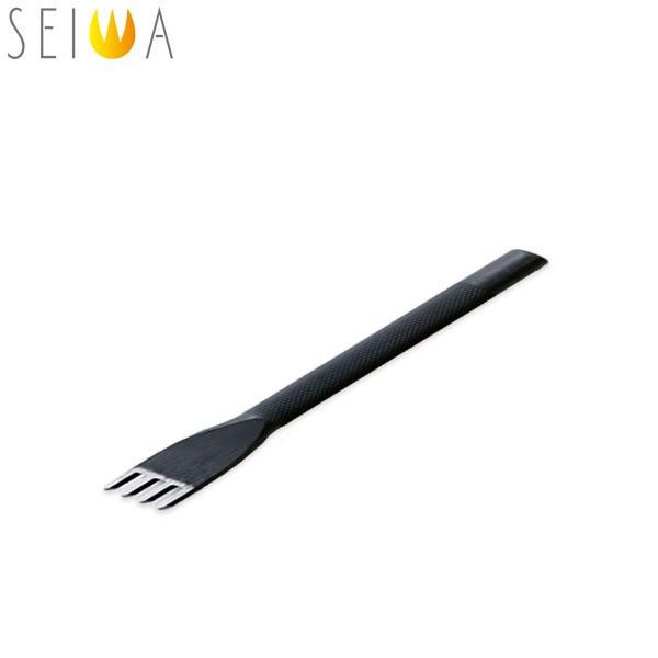 | 刃先は菱目打のように先端が「点」ではなく、角と角をつなぐ「線」形状になっています。そのため、革の厚みで穴のサイズが変わらず、線状の縫い穴があきます。4本目は直線をあけるのに適しています。 |
