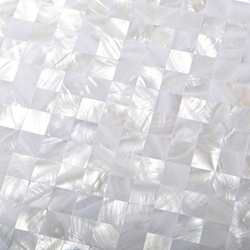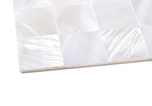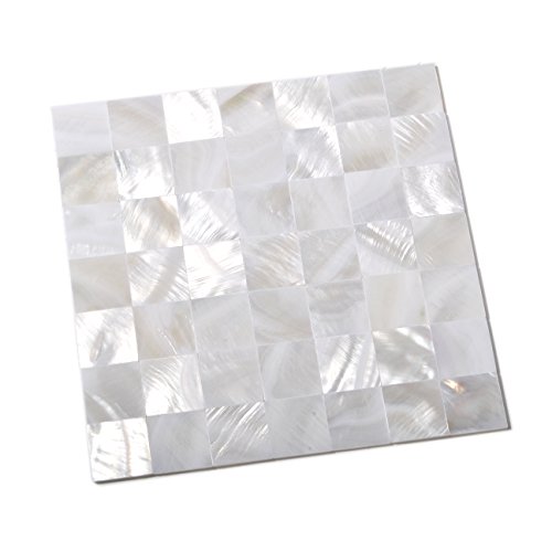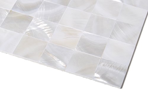 TST Mother of Pearl Tiles White Groutless Mosaic Squared 4/5'' Chips - 2 mm Thickness - Mesh Mounted - Nature Shell Tile MOP01 (6 x 6 Inches Sample)