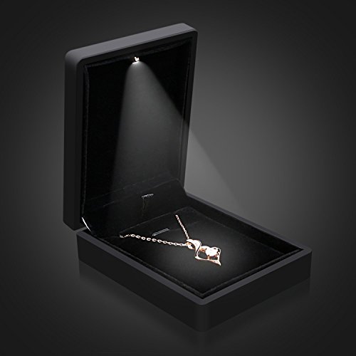 -. Feature : It's unique design, box only, pendent not included. / Led light- Our Night Box comes with an LED light for when your diamonds need a little extra shine in dark romantic settings. / Rubber Paint,velvet insert. The battery can't be placed, also the light can work for 12 hours continuously,we sest our customers buying it very soon of your planned use.Any problem of the box once reaches you ,please contact us asap,we will solve it for you. / Bring you good luck, she will love it and say YES!! / Size: L x W x H: 90mmx70mmx32mm