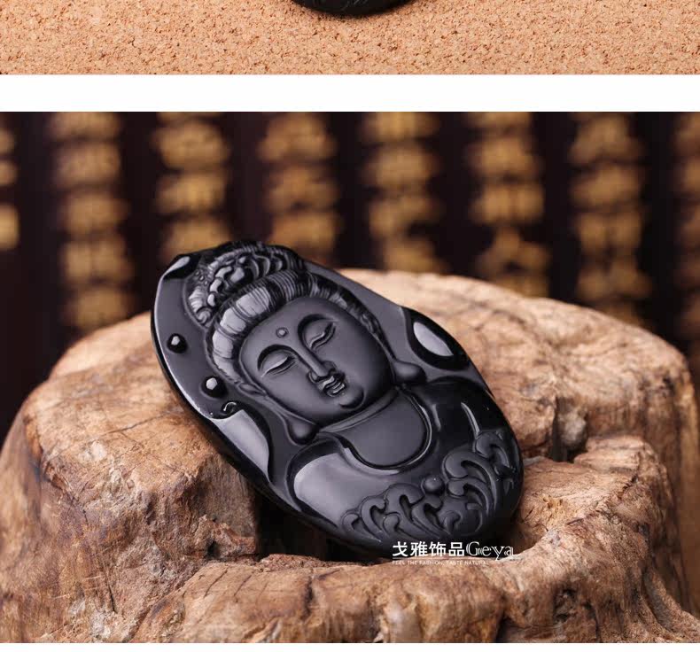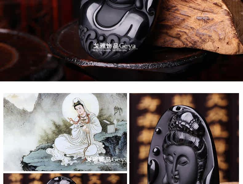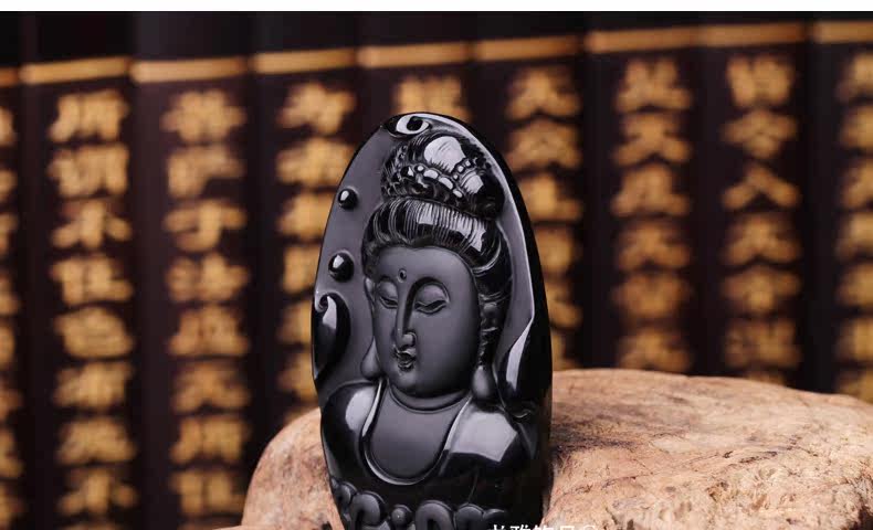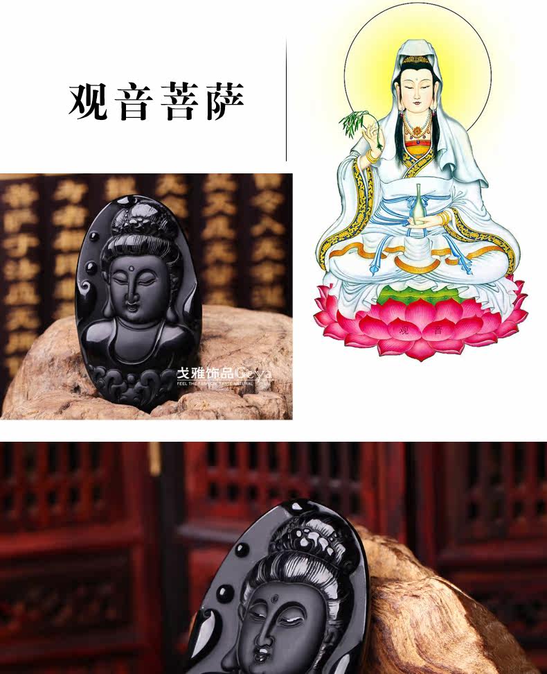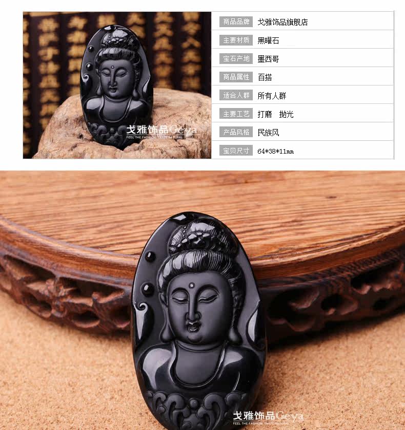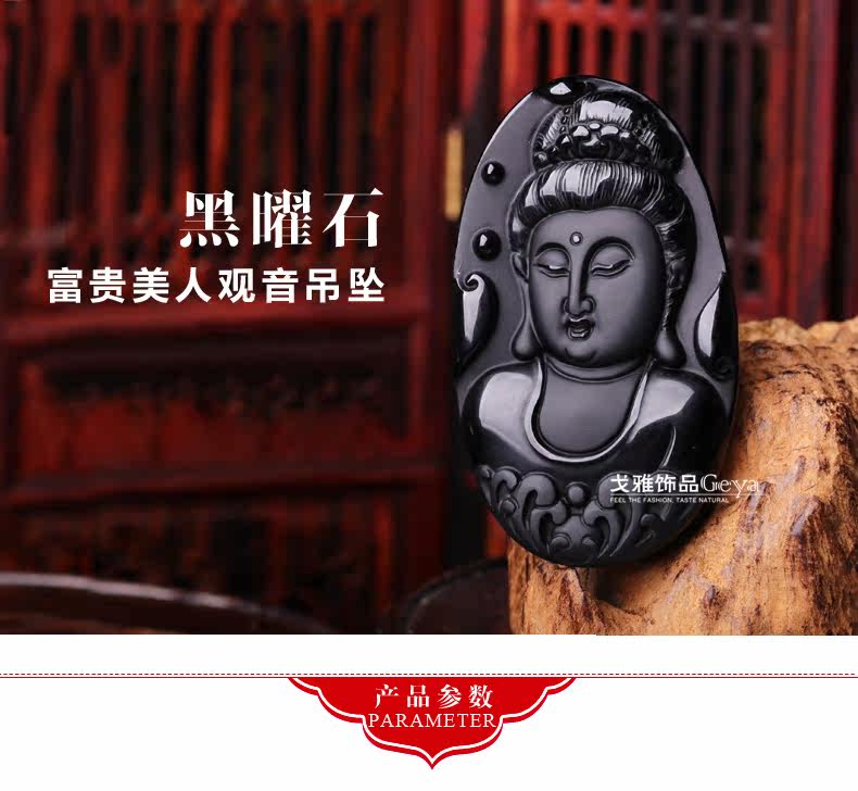 天然墨西哥黑曜石吊坠美人观音吊坠水晶水晶饰品礼物