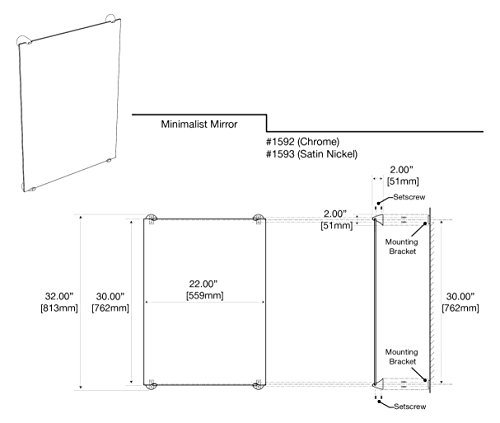 Gatco 1592 Brie Minimalist Bathroom Fixed Mounted Mirror, 30", Chrome