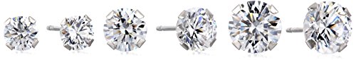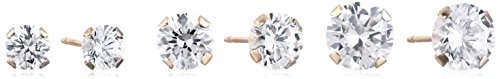 • Three pairs of stud earrings in graduated sizes featuring prong-set Swarovski Zirconia rounds in 10k gold