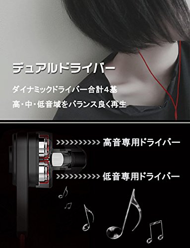 左右それぞれ6mmダイナミック型ドライバー2基搭載(高音域強化ドライバー&低音域強化ドライバー)、サウンドが高・中・低三音域が非常にバランス良く、スタジオで録音したマスター音源に近い高解像度音楽データを再生できます。