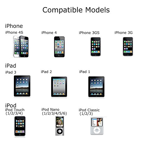Works with iPhone 4/4S/3G/3GS,iPad 1/2, iPod touch 1/2/3/4, and iPod nano 6