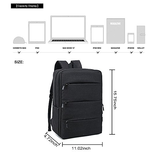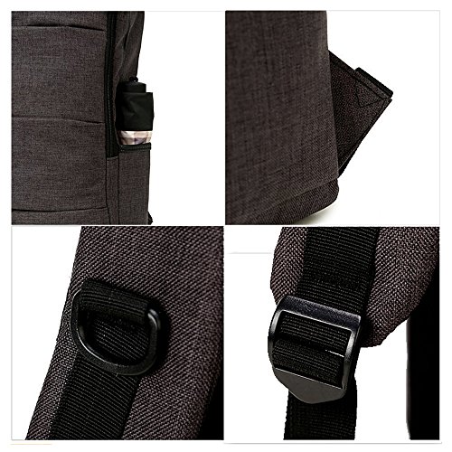 -. Feature : ★SIMPLE & STURDY : This laptop backpack has a linen fabric exterior and a 210 nylon fabric interior. Water resisted, soft, comfortable and wearable. / ★LARGE CAPACITY : The laptop compartment holds up to a 15.6 inch laptop. Multi-pocket enables storage of your iPad, power adapter, cables, phone, notebooks, books, pens, wallets, umbrellas, water bottles and other things to carry with you. / ★MULTI POCKETS : 1 X main zipper pocket, 1 X large front pocket, 3 X small front pockets, 2 X side pockets for water bottle and umbrella. / ★LIGHTWEIGHT & STYLISH : The design of the backpack is simple and stylish. It's a very good backpack for working, traveling, hiking, camping, college, school and everyday using. / ★SIZE : 11.02" L x 15.75" H x 4.72"W. Weight: 1.25 Lb.