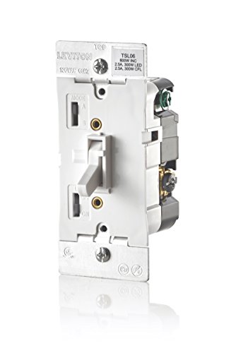 Leviton TSL06-1LW Toggle Slide Universal Dimmer, 300W Dimmable LED & CFL, 600W Incandescent & Halogen For Single Pole Or 3-Way, with Locator Light, White