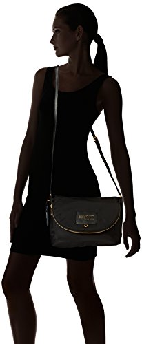 A scaled-down Marc by Marc Jacobs cross-body bag in a crisp weave. An optional luggage tag hangs from the side. A zip pocket and a leather logo patch accent the fold-over top. Slim magnetic pocket in back. Lined, 3-pocket interior. Adjustable shoulder strap.Feature