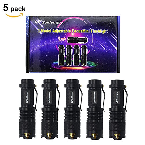 Goldenguy 5 Pack Mini Cree Q5 LED Flashlight Torch 7w 350lm Adjustable Focus Zoomable Light