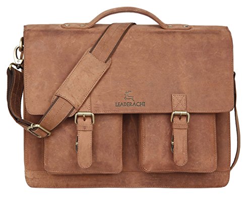 -. Feature : 100% GENUINE HUNTER VINTAGE LEATHER: Crafted from tough, 100% Semi Full-Grain Boot Leather, which takes hits well and looks even better with age. Full-Grain Leather is the top layer of the cow skin which is the most expensive and toughest part. The distinguishing feature of this leather is that the leather may have wrinkles, scratches that are inherent characteristics. / CRAFTMANSHIP, STICHES AND PARTS: Our Products are handmade by Professionally Skilled Craftsmen, because of which the bags have best finishing in its class. Brass/ Metal Fitting Buckles and Holders are Internally Lined with Strong Green Canvas make it Durable and Long Lasting. Every stress point on this bag is double-stitched and riveted or reinforced with hidden nylon strapping. / PERFECT FOR ANY SITUATION: Looks great in the courtroom, boardroom, on worldwide travel. We have received countless positive testimonials from company executives, lawyers, military personnel and college students who love their classic messenger briefcase bag. / FEATURES AND COMPARTMENTS: 13" Tall x 15.5" Wide x 5" Deep with 3 large main compartment sealed by a leather cover with magnet closure, 1 large zip pocket within the main compartment (ideal for laptops), 1 secondary compartment in front of the spacious main compartments, 1 zip pocket in front of the spacious main compartments, 2 smaller, separately attached compartments which are sealed by the leather cover with magnet closure, 1 zip pocket on the back.