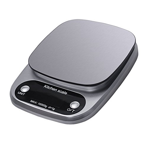 LCD Display: With large LCD display for easy to read the scales. With sleek stainless steel platform provides durable and enough room to put a bowl or container on top.