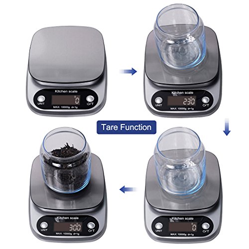 Tare Function: Precision tare feature subtracts the weight of the container for the net weight of the ingredients to your kitchen food
