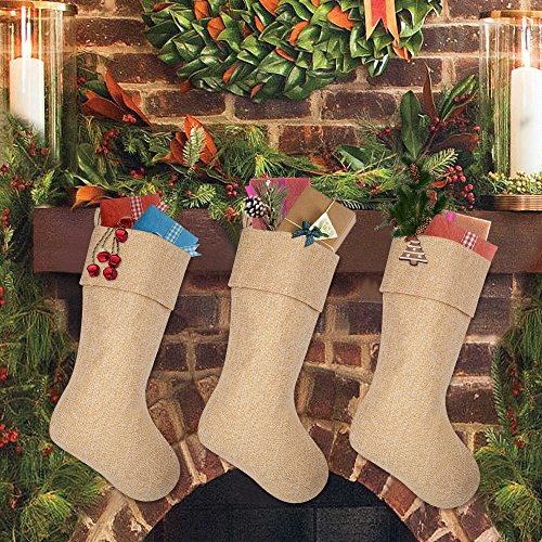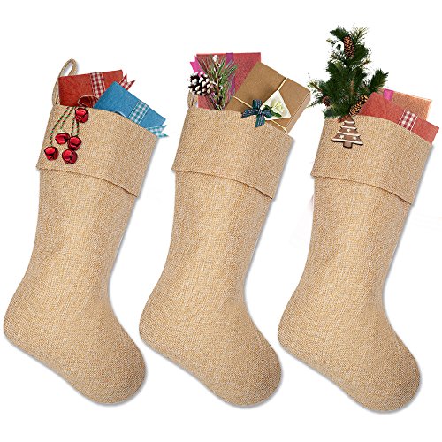 Ivenf Burlap Personalized Christmas Stockings, 3 Pack