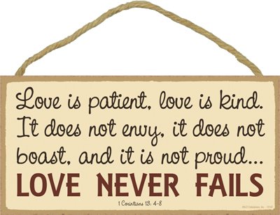 (SJT13147) Love Is Patient, Love Is Kind,. It Doe Not Envy, It Does Not Boast, And It Is Not Proud? Love Never Fails 5" x 10" Wood Plaque Sign