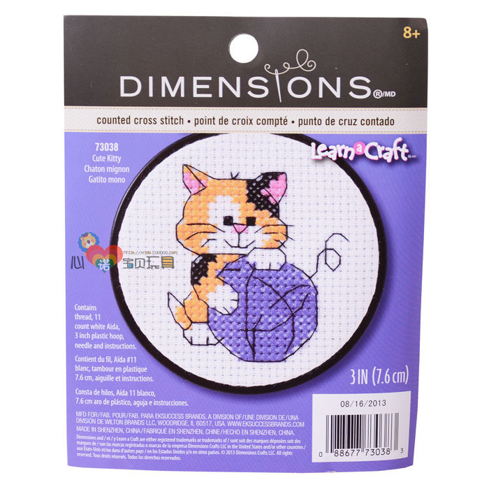Description:?DIM?is short for a "Dimensions",?it?is a famous?brand?in the fieldof?cross stitch,?in?USA,?the company's?innovative product design?fashion,rich?product?suite,?vivid,?three-dimensional sense of strong,?much to everyone's?pet recovery.?This?set includes?a?white?cloth,?11 beams ofcolored thread,?an?embroidery?needle?shed,?detailed?instructions,?please bring your own!?Manual?operation is very?detailed,?which part of?cat?whatcolor lines?are detailed!?Come?and children?together,?create their own works!