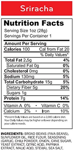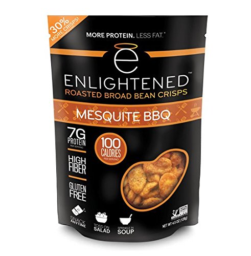 ReleaseDate : 2016-11-16 Studio : Beyond Better Foods(Grocery) Publisher : Beyond Better Foods(Grocery) Binding : Grocery Product Description A healthy, delicious roasted broad (fava) bean snack that is lightly roasted in sunflower oil and seasoned to perfection. Our crisps are low-calorie, with just 100 calories per snack-sized serving (40% fewer than almonds)--a healthy snack that doesn't compromise on taste! ENLIGHTENED crisps are low-calorie, all-natural snacks that are packed with 7g protein and 5g fiber, low in sugar (1g) and fat, and full of delicious flavor. They're also non-GMO project verified, gluten-free, and vegan. A great nut, chip, or crouton alternative. 0