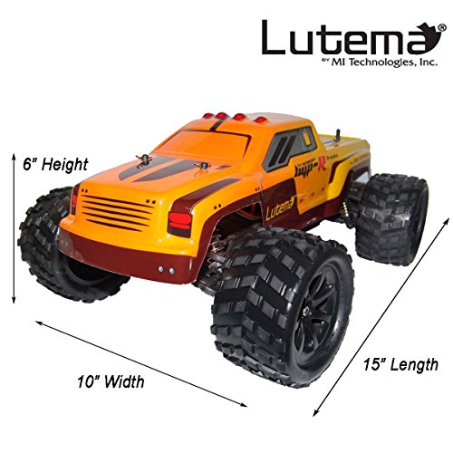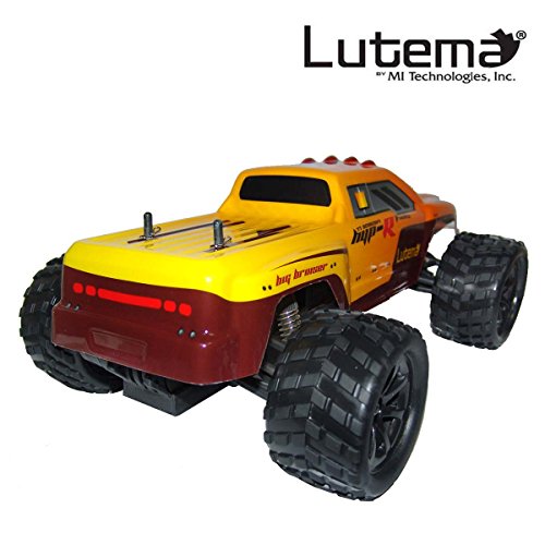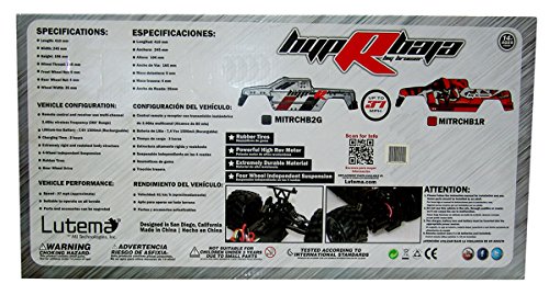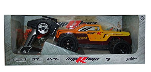 Studio : Lutema Publisher : Lutema Binding : Toy Product Description The new Lutema Hyp-R-Baja Truck Big Bruiser is the fastest and most agile Truck in its class, on or off road. With it precise handling and quick speed, this truck is engineered to impress. Vehicle Configuration: - Signal receiving are realized through two configurations (Radio and 2.4G) - 390 motor - Engineering plastics are adopted to make the whole car - Four-wheeled independent suspension - Rubber tires - Driving method: Two-wheeled driven - Rear-wheeled differential gear - Metal receiving cup - Speed: 37 mi/h (61km/h) - Suitable to operate on flat ground, over gravels, or on grassland - Can be continuously operated for 10 minutes or above - Accessories can be upgraded - Remote Distance: 100m - Transmitter Battery: 4 x AA (Not Included) 0