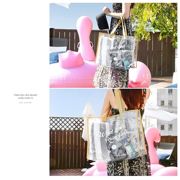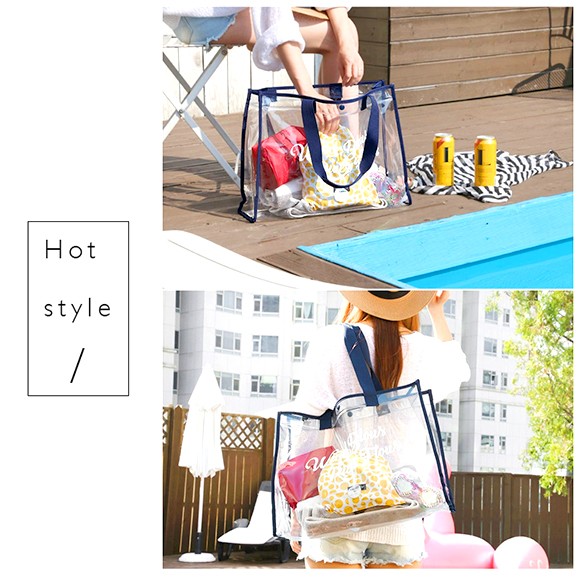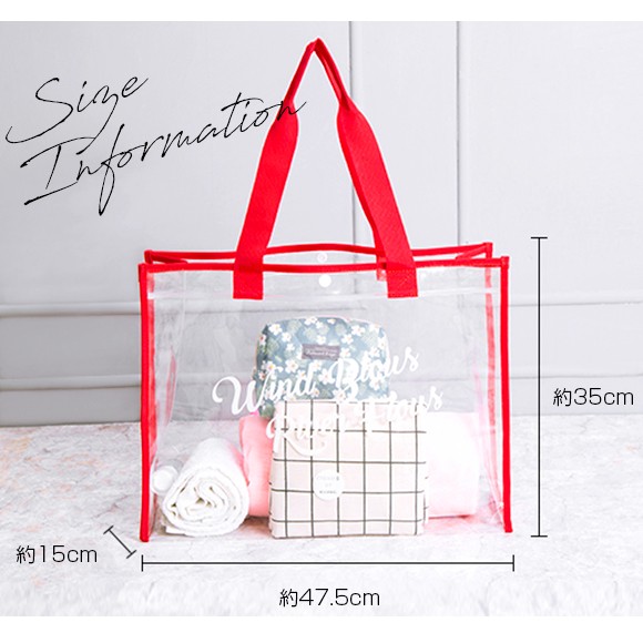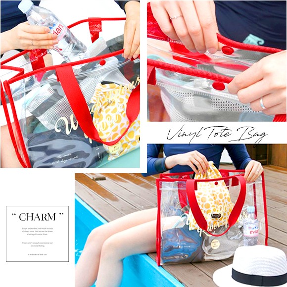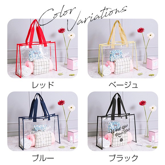 ◆商品紹介◆ 夏のお出掛にぴったりなビニールトートバック★ 大き目サイズなのでビーチやお泊りにもおすすめ♪ とても涼しげで今年の夏は大活躍してくれます!◆サイズ詳細◆ 横:約47cm 縦:約34cm マチ:約15cm 持ち手高さ:約24cm ※サイズ詳細は平置きで測った際のサイズとなっておりますので多少の誤差は予めご了承下さい。 ◆素材◆ ナイロン※画像の色味はお使いのパソコンやスマートフォン等モニター環境により実際の色味とは若干異なる場合がございます。