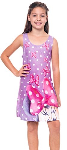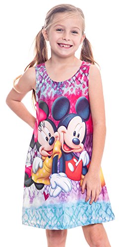 Disney girl's tank dress featuring Mickey Mouse, Minnie Mouse, and friends. Girl's sizing approximate ages 4-10 years old. Thin, lightweight material makes this dress a great nightgown, beach coverup, or everyday summer dress. Sleeveless, pullover style (no zippers or buttons).Feature