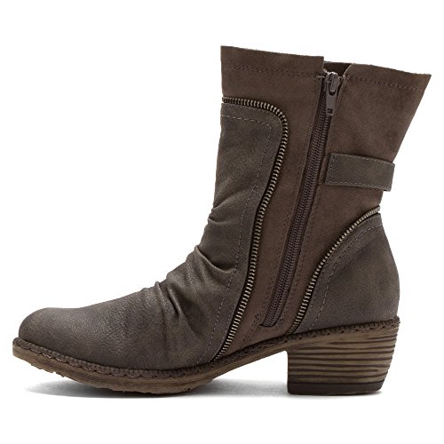 Studio : RIEKER Publisher : RIEKER Binding : Apparel Product Description Elegance and comfort blend seamlessly in the women's Rieker 93761 Bernadette 61 boot. Crafted from supple leather, this adjustable strap featured boot comes with a side zipper and stacked heel for added support. Its leather lining and insole pamper your foot with each step For a magnificent finish, there is a synthetic outsole, giving optimal slip resistance protection on all types of surfaces. 0
