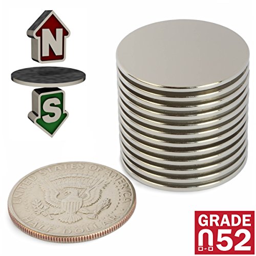 Neodymium Magnets N52 Super Strong – Pack of 12 Powerful Rare Earth Magnets – Round 1.26"D x 0.06" Thin Magnetic Discs – Craft, Science or DIY Magnets