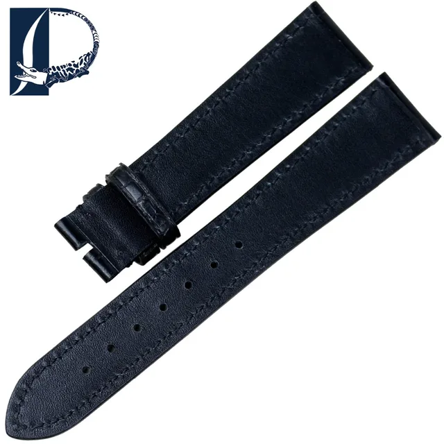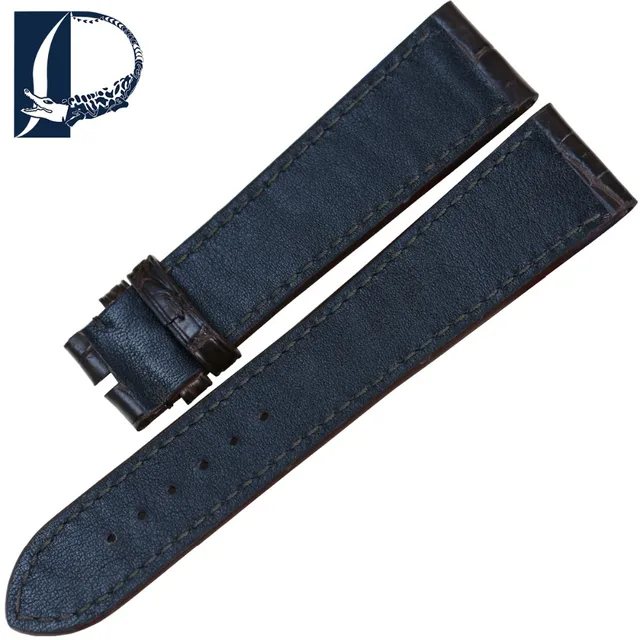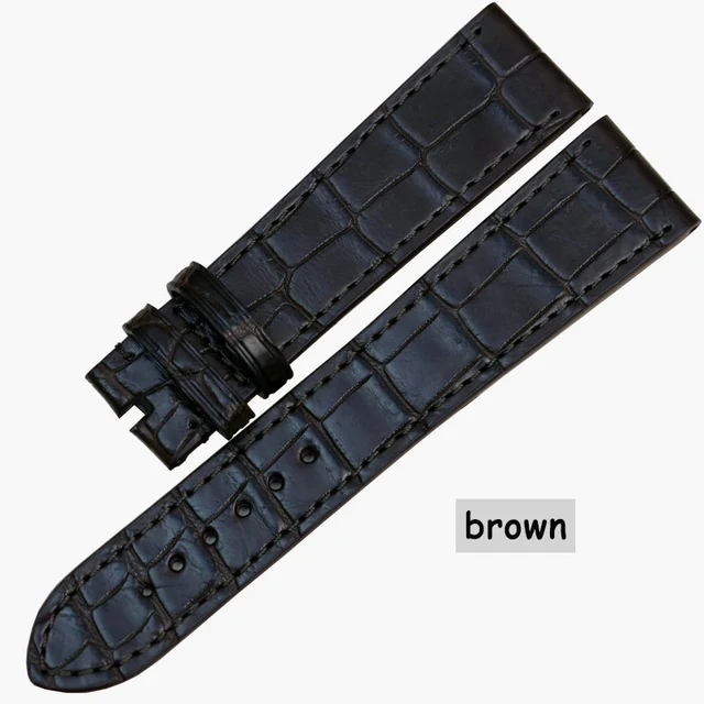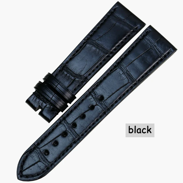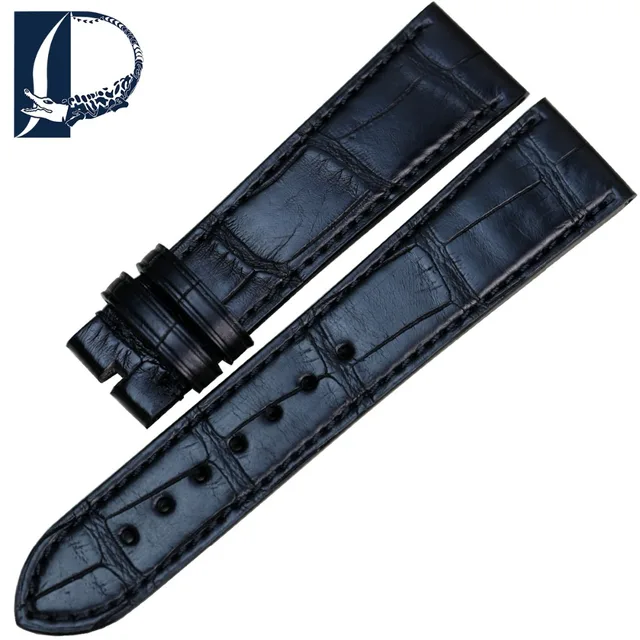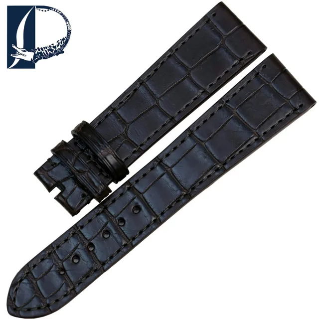 Pesno 적합한 zenith 블랙 브라운 시계 액세서리 악어 매체 광택 악어 가죽 스트랩 시계 남성 손목 시계
