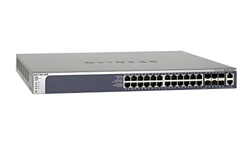 The M4300-28G switch provides 24 Gigabit access ports with 2 10GBASE-T and 2 10GBASE-X SFP+ uplink connectivity