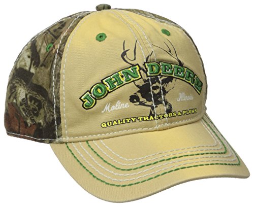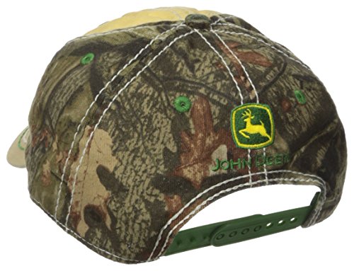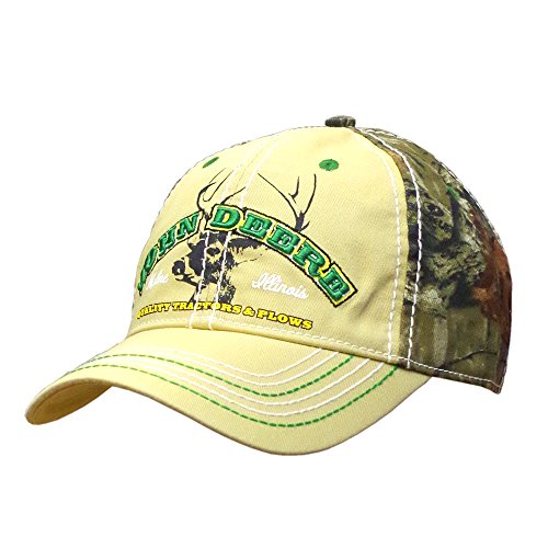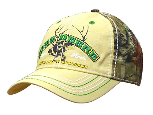 Studio : John Deere Men's Apparel Publisher : John Deere Men's Apparel Binding : Apparel Product Description Screen print/yellow front screen print with embroidered John Deere block letters mossy oak camo back John Deere cap. The bill has contrast green stitching. 0