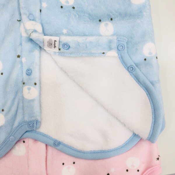 기모로 안감처리되어있어추운겨울 따뜻이 입힐수있는 수면조끼입니다.스냅버튼으로 입고 벗기 편리합니다.