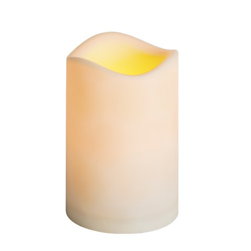 - Gerson 33548 - 3" x 4" Bisque Color Wavy Edge Battery Operated Timer Single Flame Pillar Resin Christmas Holiday Flameless LED Wax Candle Light