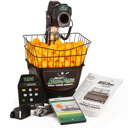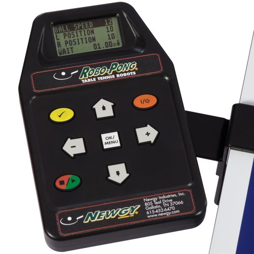 The Robo-Pong 1050 - Newgy's digital robot for serious table tennis players and recreational ping-pong players. This revolutionary digital robot provides easy precision for ball speed, placement and frequency. Normal Mode gives you simple manual control over each function. Random Mode offers a more unpredictable and challenging experience to keep you on your toes! Drill Mode offers 64 pre-programmed drills for various playing levels and you can also create your own custom drills. Train strokes, footwork, transitions and other skills. Available spins: topspin, backspin, left sidespin, right sidespin, combination spin. Available shot selection: push, chop, serve, counter, lob, fast loop. Head angle adjustments: from low (serves) to high (lobs). Position the robot anywhere on top of the table to get a variety of angles and trajectories. The Robo-Pong 1050 includes Ball Thrower w/oscillation, Ball Bucket with Extender Cage (holds approximately 200 balls for several minutes of non-stop play), Digital Control Panel (6 languages), 4 Dozen 40mm Robo-Balls, Set-Up DVD and Training Manual.