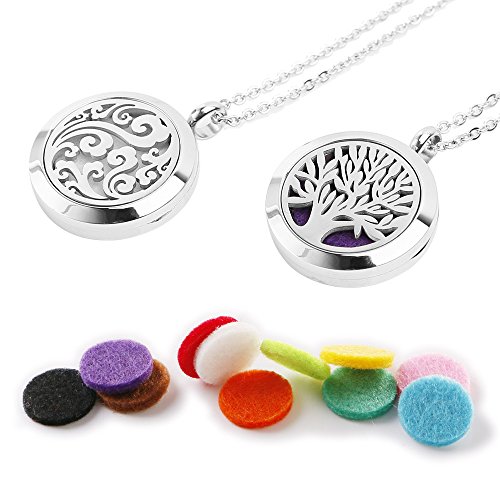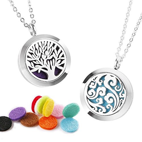 2Pcs Essential Oil Diffuser Necklace 316L Stainless Steel Locket 2 Pattern Aromatherapy Diffuser Pendant with 24 Inches Adjustable Chain (11Pcs...
