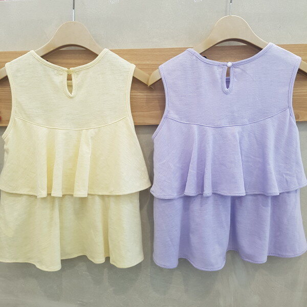 사랑스러운 프릴이 들어가있는게 포인트인 나시스타일로 레깅스나 스키니 데님팬츠와 코디하기 좋은 아이템